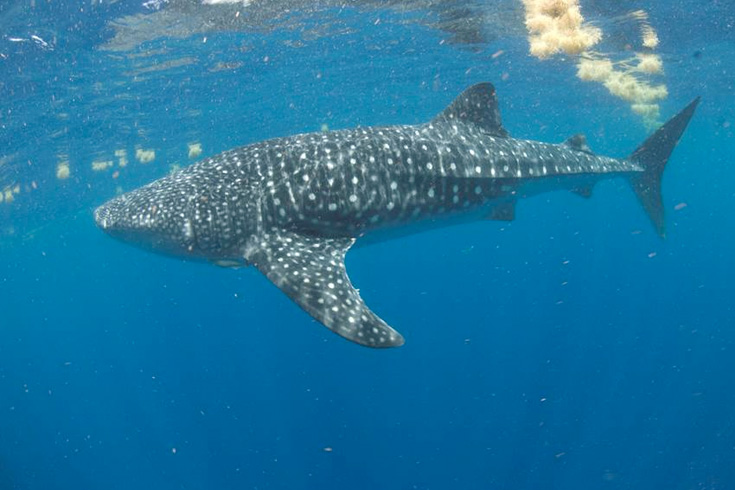 Dr. Hoffmayer: Ironically, even though whale sharks are the largest fish in the ocean, we still know so little about them, specifically here in the Gulf of Mexico. We know from our research efforts, as well as from research efforts of our colleagues in the southern Gulf, that whale sharks are relatively common in the Gulf. Unfortunately, due to their highly migratory nature and preference for offshore habitats, we still do not have a good population estimate for this region. However, colleagues working in the southern Gulf have estimated that between 500 and 900 individuals occur off the Yucatan Peninsula. In the northern Gulf, whale sharks occur along the continental shelf edge from Brownsville, Texas, to the Florida Keys and commonly occur off the mouth of the Mississippi River.