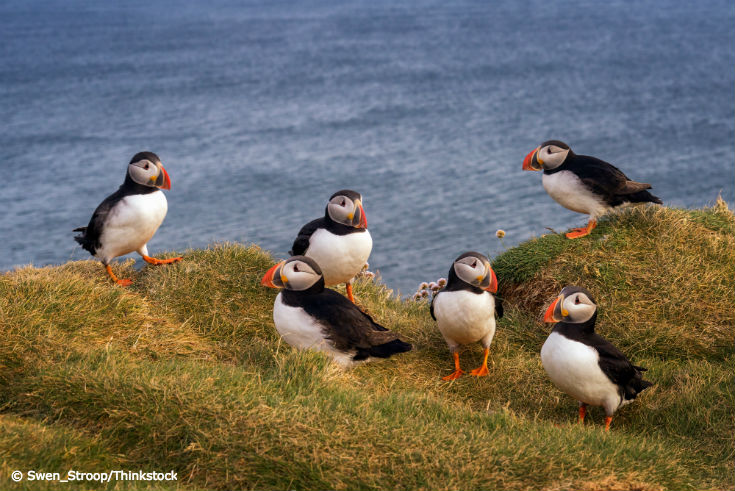 Looking to spot an Atlantic puffin in the wild? Check out Iceland—the country’s rocky cliffs are a breeding home to about 60% of the world’s Atlantic puffins. See more puffin facts here.