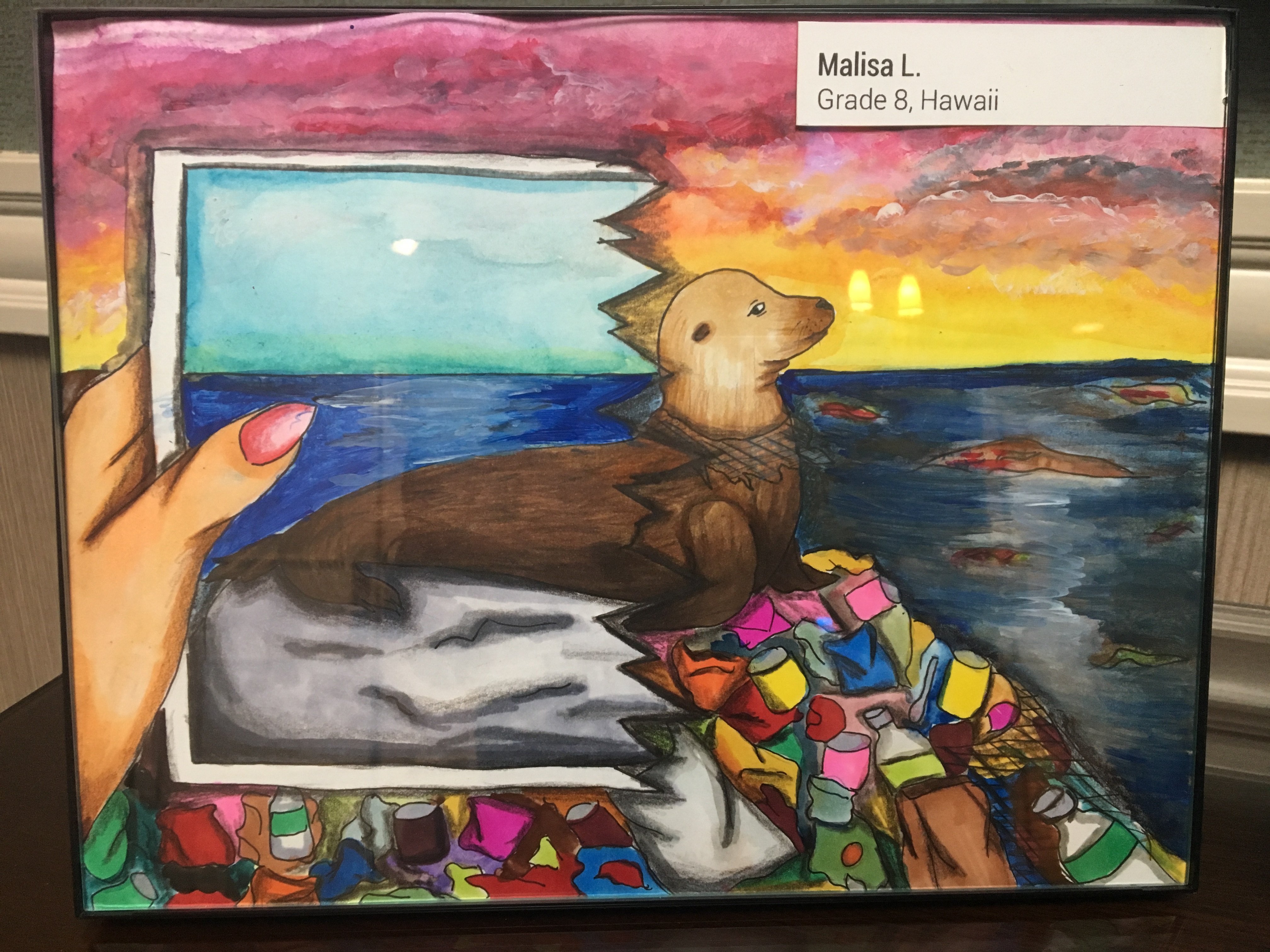 As if the 70+ sessions weren’t enough, the five-day conference also included a poster night, where researchers presented new findings on the prevalence of microfibers in Mediterranean fish populations, the impact of sunlight on the molecular structure of plastic, and the effectiveness of bottle bills in reducing plastic beach trash, among many other ocean trash-related inquiries. Mid-week, attendees were able to participate in one of several planned field trips, including a local beach cleanup; a visit to the working waterfront of San Diego Bay; and an ocean plastic monitoring cruise, to name a few. On the fourth night, the San Francisco International Ocean Film Festival—which wrapped up just last month—screened a selection of film entries relating to ocean trash (including mini documentaries and even a few animated shorts like “Ain’t No Fish” and “Gloop”). And the venue itself, which of course was made completely zero-waste with reusable utensils, glasses and even chalkboard name tags, was decorated with student artwork on marine debris and featured a back room of professional art installations on the topic.