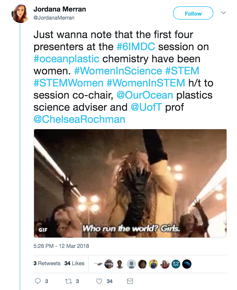 I think this Tweet says it all.There was no shortage of women scientists, officials, and activists showing leadership on the marine debris issue. In fact, all three scientists presenting at the “State of the Science Panel” plenary session were women, not to mention key members of an NCEAS scientific working group on marine debris that Ocean Conservancy initiated in 2011.