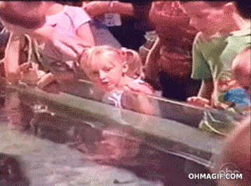 There are more than 200 different species that fall under the classification of stingray. The most defining feature of this group is its infamous tail, which is tipped with venomous barbs, and is constantly being shed and replaced. There are stingray fossils that date back to nearly 150 million years ago and scientists have found evidence of ancient Greeks using the rays’ spines as anesthetic for dentistry as well as of ancient Egyptian craftsmen and merchants making leather from their skin. Similarly to manta rays, stingrays also have countershading coloration, but their coloring is more murky, dependent on their habitat near the seafloor. Instead of having a mouth in front, their mouths are located on their dorsal side, along with their gills and nostrils, arranging themselves into a cute, smiley face. Stingrays can grow to be 6 ½ feet with a lifespan of 15-25 years. Unlike manta rays, female stingrays have around one litter per year, bearing between two and six young after a two to four month gestation period. Stingrays are also ovoviviparous and newborn stingrays come out looking like little ravioli, only they’re alive and can swim. The mother usually stays with the young to provide protection, creating a lower mortality rate than that of juvenile manta rays.