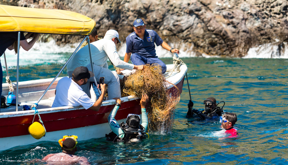 The training began in the classroom with participants learning how to decide whether or not gear should be removed, how to put together a dive plan using a decision tree framework and hearing from experts at Project Aware, Conservación ConCiencia and more. The next day, participants were ready to get their feet wet. Early Friday morning, they made their way to Taboga Island off the coast of Panama City where two ghost gear sites had been identified. As the divers got to work underwater, the rest of the team prepared to gather data using GGGI’s Ghost Gear Reporter App on the size, weight and type of gear recovered.