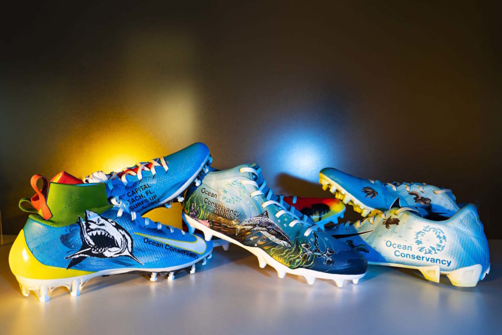 Players from coast to coast joined #TeamOcean by choosing to put our ocean on display when their teams took the field on Sunday, December 8, 2019. In all, seven players chose to support Ocean Conservancy for the 2019 edition and represented teams from across the country (San Francisco 49ers, Los Angeles Chargers, Detroit Lions, Atlanta Falcons, Cleveland Browns, Miami Dolphins and Jacksonville Jaguars).